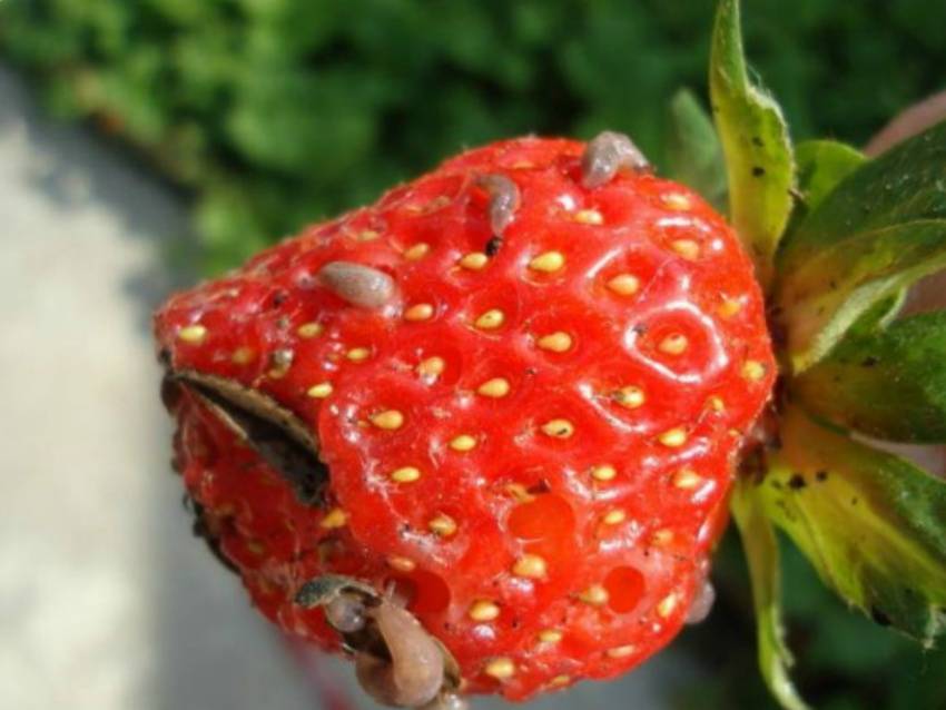 Слизни предпочитают объедать у клубники спелые ягоды. Повреждение листвы и зелёных ягод почти не наблюдается.