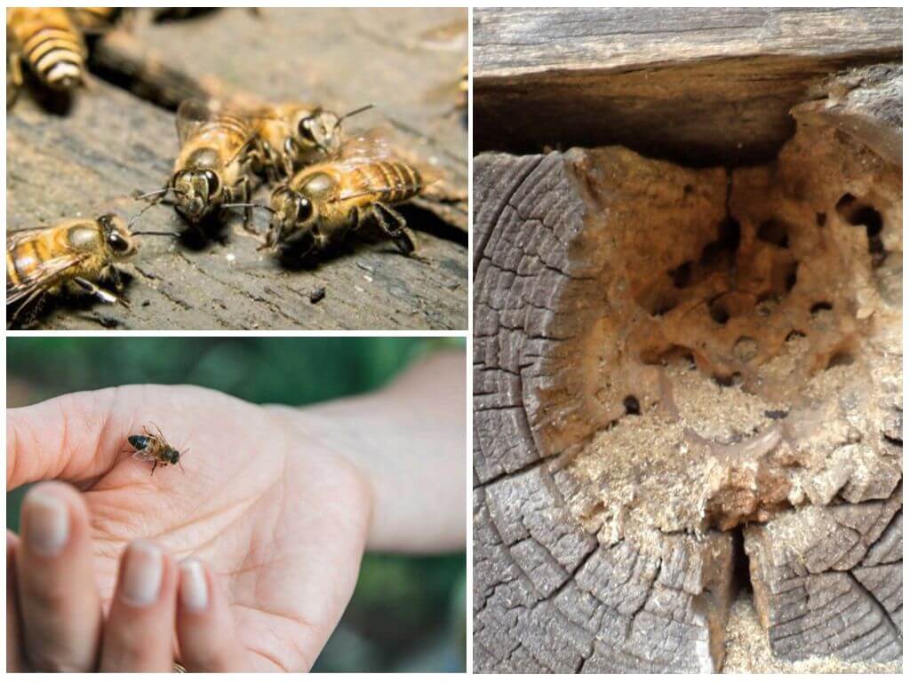 Если вывести пчел из деревянного дома не удается, нужно дождаться зимы. Поздней осенью рабочие особи погибают, остаются зимовать только молодые матки, которые прячутся в разных щелях деревянных построек. Старое гнездо нужно аккуратно снять, уничтожить. Ранней весной тщательно осматривать дом, чтобы не пропустить новое гнездышко древесных пчел.