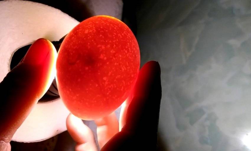 Проверку яиц при помощи света нужно делать в темноте. При этом яйцо располагают к свету более широким концом, немного наклоняют и внимательно рассматривают его внутренности. Внутри яйца, примерно в центре, вы должны увидеть маленький сгусток, состоящий из кровеносных сосудов. Если его нет, то смысла откладывать подобные яйца для выведения цыплят просто нет. Может случиться и так, что вы не обнаружите никакого сгустка в центре, но будет виден красноватый след по контуру желтка. Это означает, что по каким-то причинам эмбрион погиб и такое яйцо непригодно для дальнейшего использования.