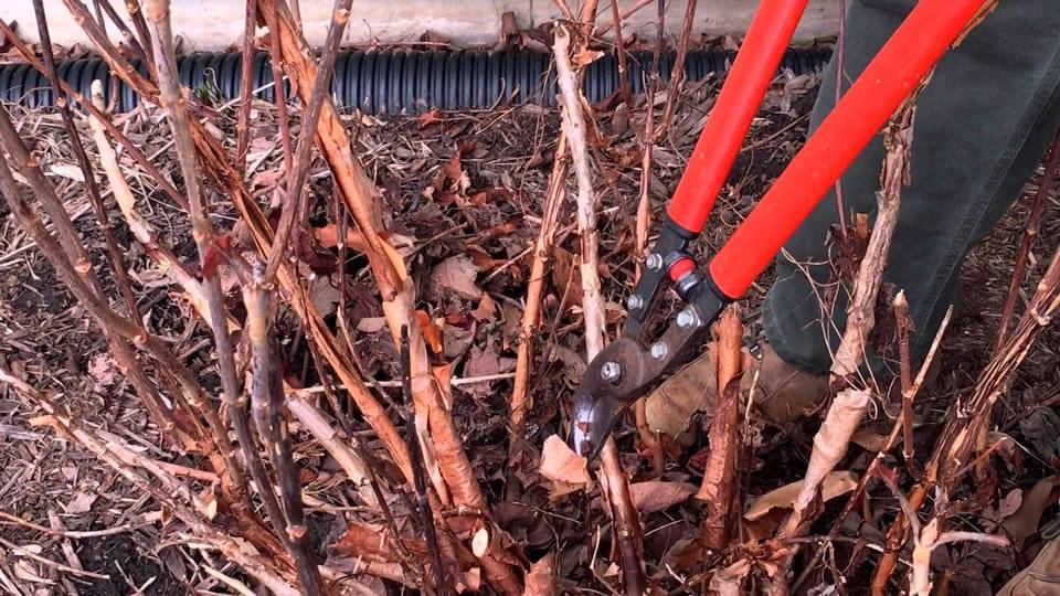 Также можно провести небольшое укорачивание стеблей, но полностью избавляться от побегов допускается только в тех случаях, если они были поражены морозом или высохли. К тому же садоводу нужно избавляться от побегов, достигших четырехлетнего возраста, т. к. они являются старыми, неспособными демонстрировать пышное цветение в теплый период.
