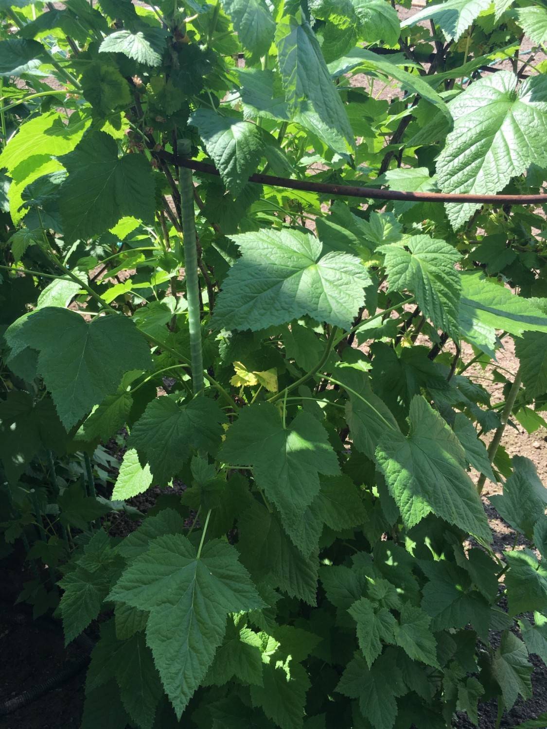 Железную основу делать можно, но нецелесообразно. Металлу свойственно ржаветь, а значит, есть риск испортить ветки и листву смородины. Может использоваться в качестве временной подпорки.