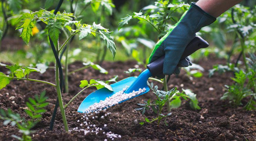 Томаты, растущие в открытом грунте, подкармливают 2-3 раза. Через 10-15 дней после посадки вносят 5-10 г аммиачной селитры и 10-15 г суперфосфата на 1 м2. В период плодообразования нужно внести 5-10 г аммиачной селитры и 10-15 г сульфата калия на ту же площадь.