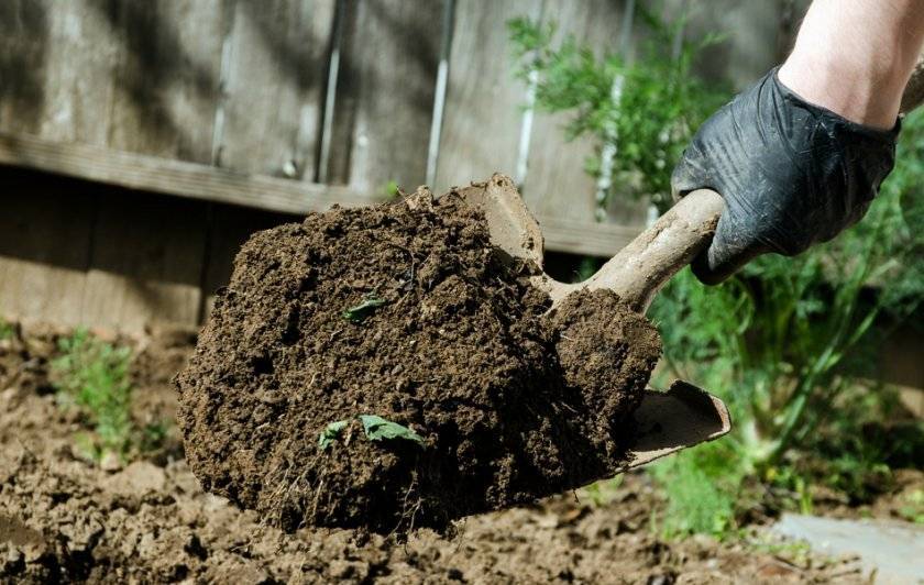 - Верхний плодородный слой почвы, взятый из ямы, смешать с 10 кг перегноя, 100 г суперфосфата и 30 г калия.