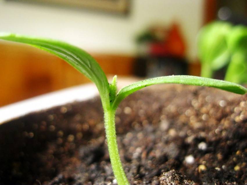 После того, как проклюнется большая часть пророщенных семян над поверхностью почвы, проводят прореживание. Температура воздуха в комнате должна быть равна 22 градуса, не должно быть сквозняков, в пасмурные дни рекомендовано проводить досвечивание.