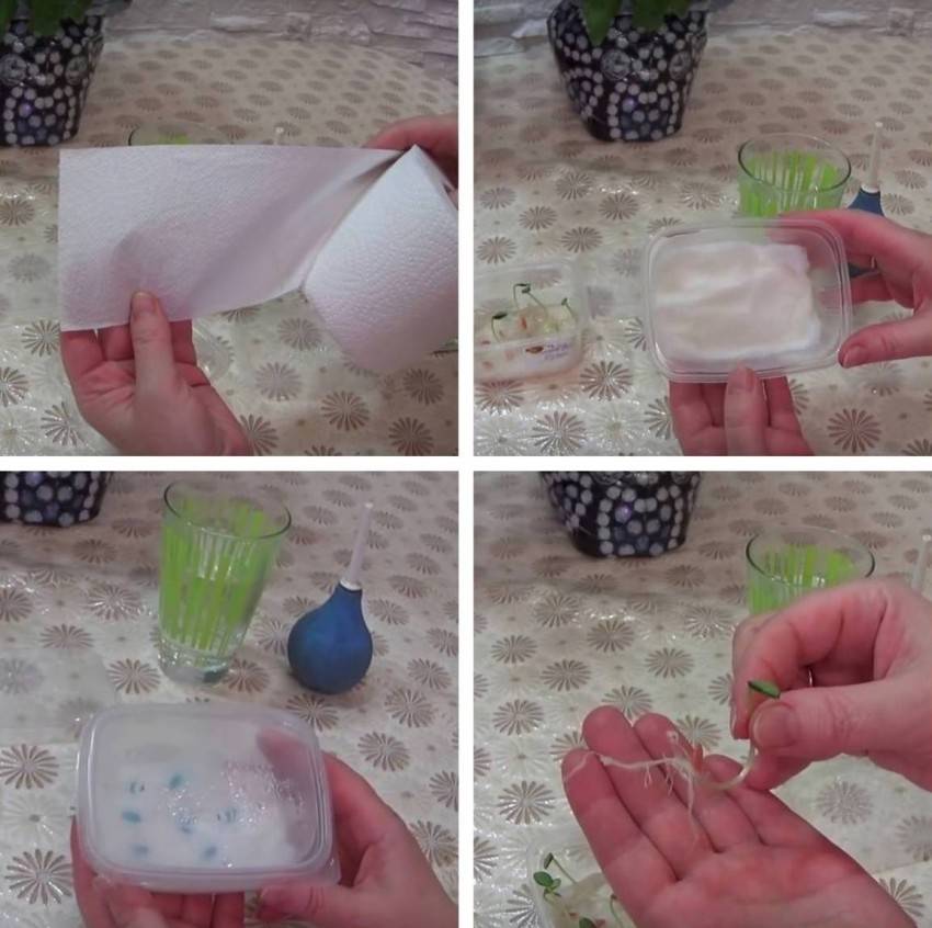 При выборе туалетной бумаги предпочтение стоит отдавать просто белой, без каких либо рисунков. Их присутствие может негативно отразиться на проращивании.