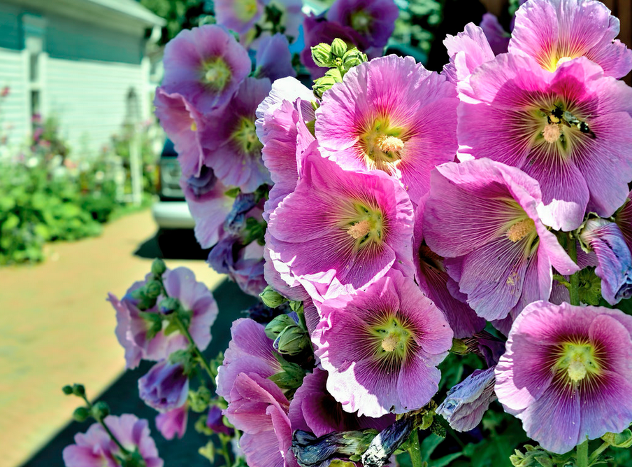 Цветы мальвы можно выращивать на открытых участках в обрамлении более низких растений и цветов, которые будут затенять нижние стебли. Хорошо развитая корневая система поможет им выдержать практически любую бурю.