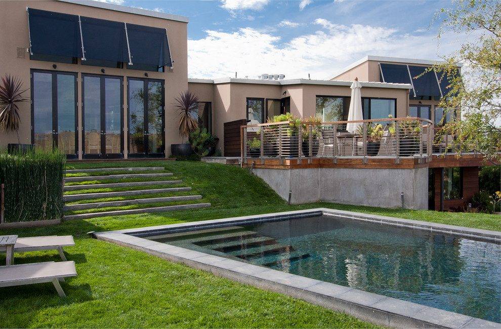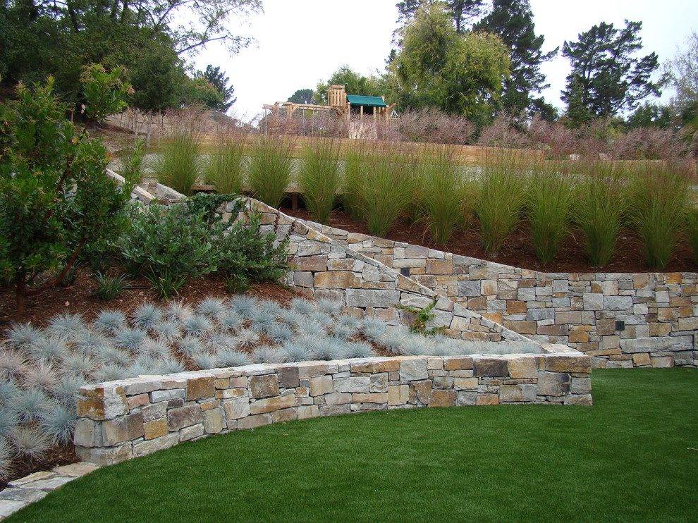 В зависимости от характеристик участка можно даже сочетать реалистичную искусственную и натуральную траву