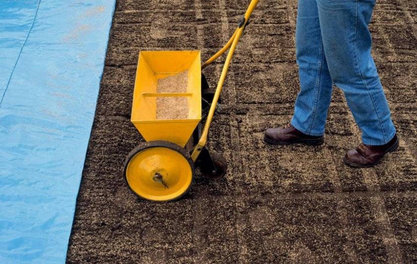 - На небольших лужайках можно сеять семена вручную, предварительно смешав их в равных пропорциях с песком. Необходимо следить, чтобы слои были равномерными.