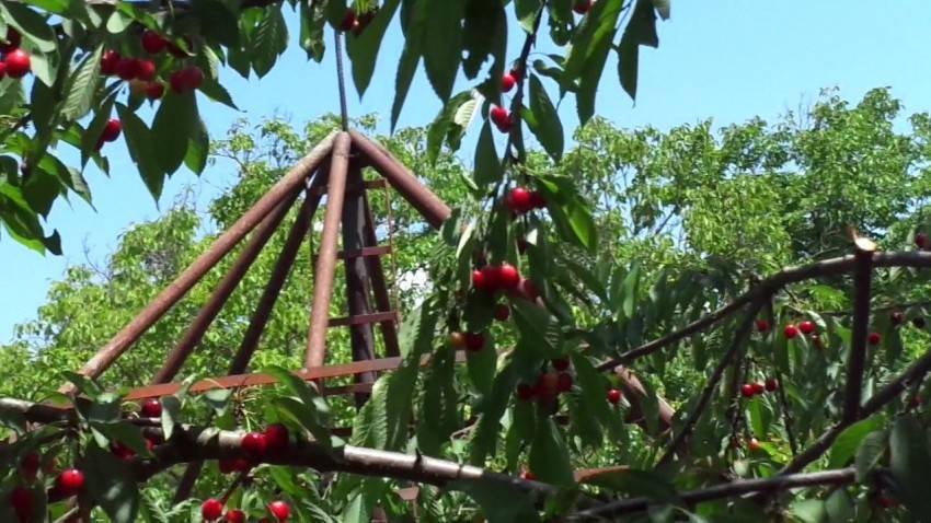 Вот такая простая последовательность из семи действий позволяет снять вишню с самой верхушки аккуратно и без повреждений.
