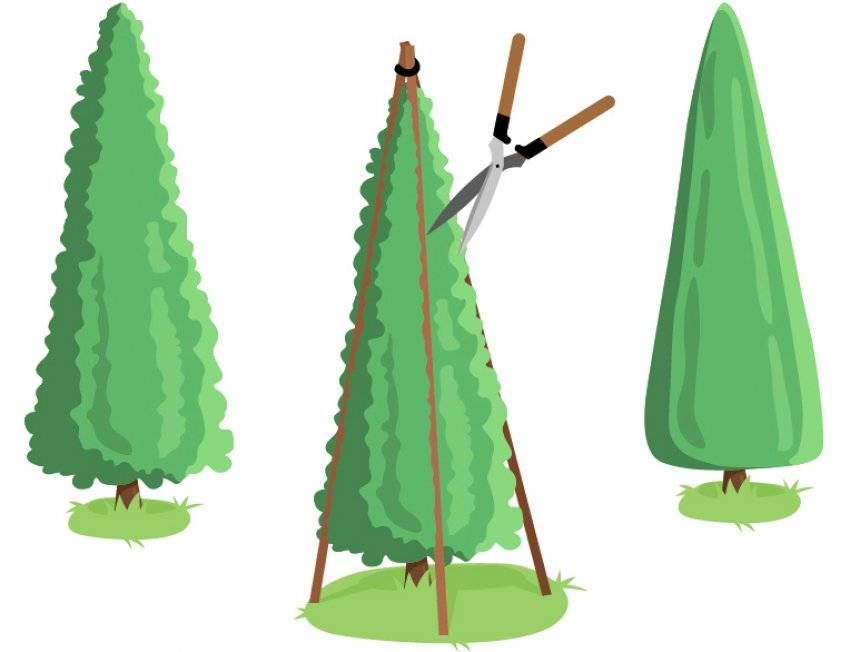 Периодичность обрезки зависит от интенсивности роста (она не превышает 35 см в год, у некоторых сортов достигает 10 см в течение года). Сроки формирования кроны регулируются так: