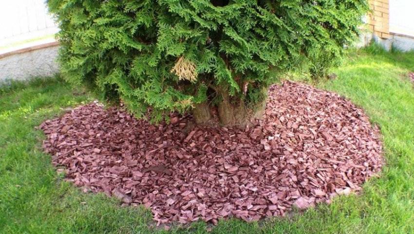 - Как уже было отмечено в пошаговой инструкции по посадке, по завершению процедуры нужно обязательно замульчировать приствольный круг туи. Мульча сохранит влажность в почве (а влага является необходимым условием для нормального укоренения). Оптимальный размер мульчи — 10 сантиметров. При первых заморозках оптимально сверху укрыть лапником.