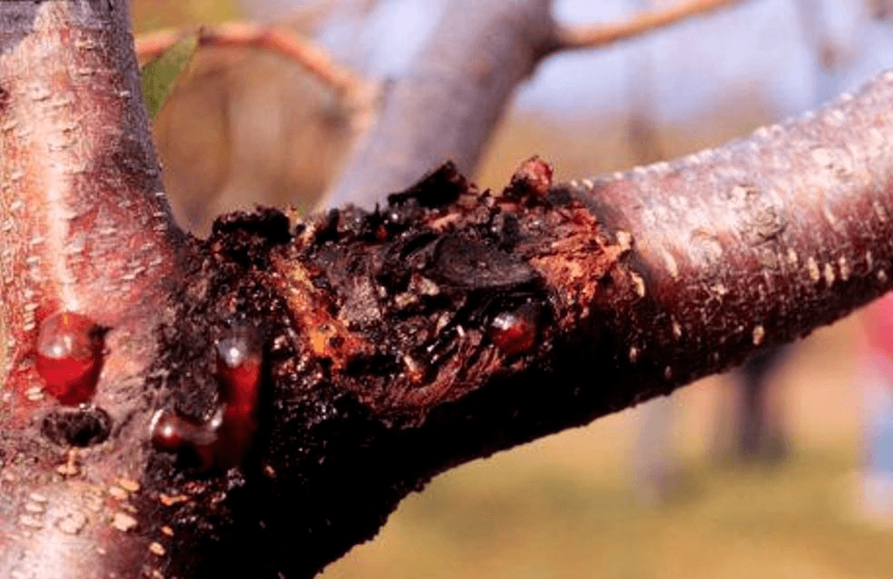 |  | Цитоспороз Признаки: дерево поражается грибком, который располагается между корой и древесиной. На поверхности ствола видны коричнево-бурые пятна, листья вянут. Со временем болезнь поражает все дерево, и оно может погибнуть. Меры борьбы: