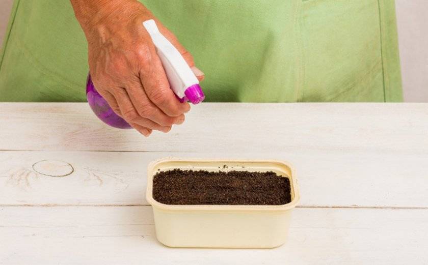 Для полива необходимо использовать лишь воду комнатной температуры. Она должна быть отстоянной в течение 1–2 суток после набора из-под крана либо отфильтрованной. До появления ростков, чтобы не вымыть семена из субстрата, лучше производить увлажнения из пульверизатора. Если посадки поразила плесень, то необходимо осуществить обработку любым фунгицидом системного действия.