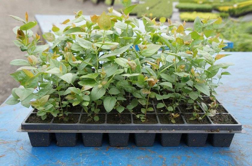 Лучший посадочный материал черники — 2-х или 3-х летние саженцы с закрытой корневой системой. Конечно, можно высаживать и кустики с открытыми корнями, однако на прилавке они сильно пересыхают, вследствие чего плохо приживаются. Кустики должны иметь здоровый вид, а из дренажных отверстий должны выглядывать корешки. Перед посадкой молодое растение аккуратно вынимают из контейнера, корешки расправляют, а побеги укорачивают до высоты 20-30 см.