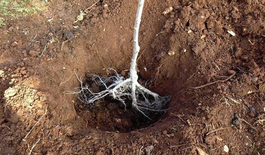 Посадочная яма, несмотря на небольшие размеры саженца, должна иметь объём, достаточный для его правильной посадки. Нормальные размеры ямы составляют 60 см в глубину и до 1 метра диаметре. Из стенок ямы не должны торчать обрезки корней соседних деревьев или сорных трав, а мягкий и достаточно рыхлый грунт растение воспримет с отзывчивостью.