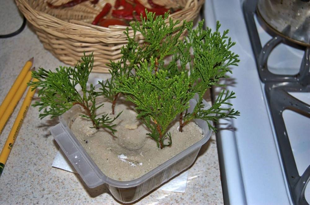 Итак, именно от правильного выбора побегов для черенкования будет зависеть не только успешность всей процедуры их выращивания и укоренения, но и здоровье, а также внешний вид самих хвойных растений в будущем. Поэтому дальнейшие действия будут заключаться в следующем.