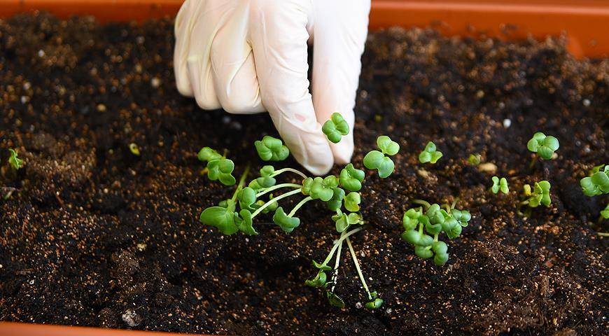 На дно контейнера засыпают дренаж (битый кирпич, керамзит и пр.), а сверху укладывают грунт, слегка его уплотняя. При желании почву можно смешать с гидрогелем. Это вещество помогает задерживать влагу, поэтому культуры не нуждаются в частых поливах. Грунт насыпают в горшок так, чтоб до края оставалось 1,5-2 см. После высадки семян землю досыпают до нужного уровня.