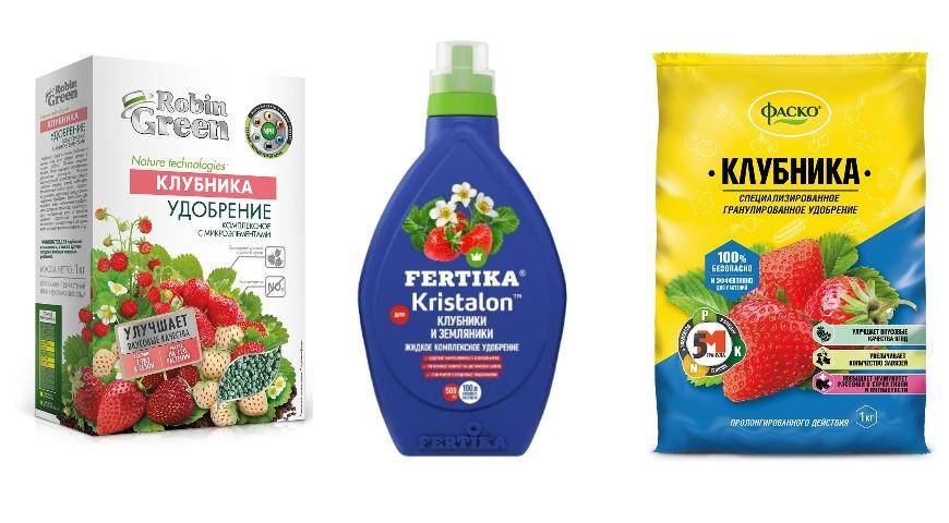 В розничных магазинах имеются в продаже специально разработанные минеральные удобрения для клубники. Они содержат уже сбалансированный набор элементов питания и особенно удобны для начинающих огородников.