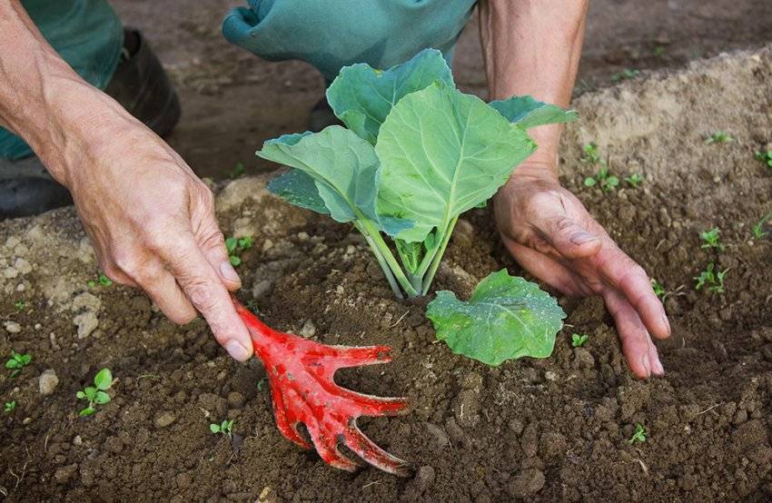 Поверхностное рыхление грунта осуществляется одновременно с прополкой почвы и после каждого полива. Процедуру проводят аккуратно, чтобы не повредить корневую систему капусты. Рыхлый грунт способствует хорошему доступу воздуха к корням растения и предотвращает застой воды в почве.