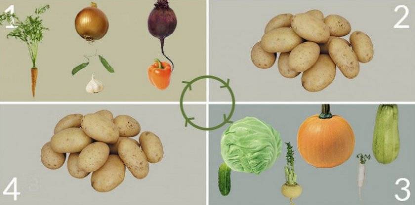 Применение рационального севооборота – залог получения хорошего результата при выращивании картофельного продукта. Постоянное культивирование овоща на одном месте приводит к обеднению почвы, накоплению в ней различных инфекций и вирусов. Поэтому месторасположение высадки растения нужно постоянно менять.