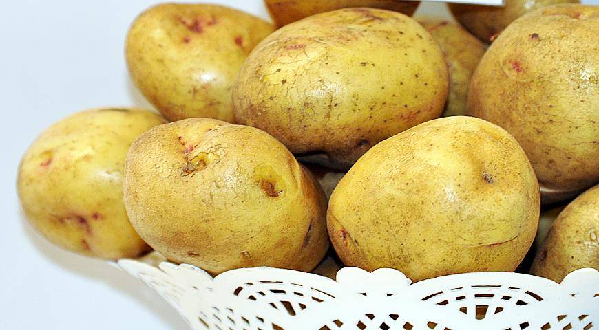 - Клубень овальный, с мелкими глазками. Кожура желтая, гладкая. Мякоть желтая. Масса клубня 96–179 г. Содержание крахмала – 11,0–17,0 %.