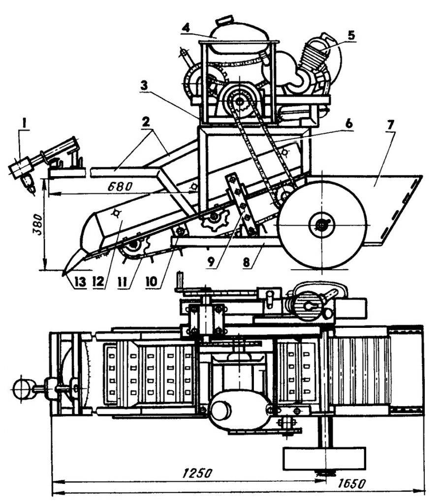 Рассмотрим изготовление картофелекопалки для минитрактора своими руками. Картофелекопалка транспортерная может быть собрана собственноручно. Для этого необходимо иметь под рукой чертежи, на которых детально будут расчерчены все части агрегата.