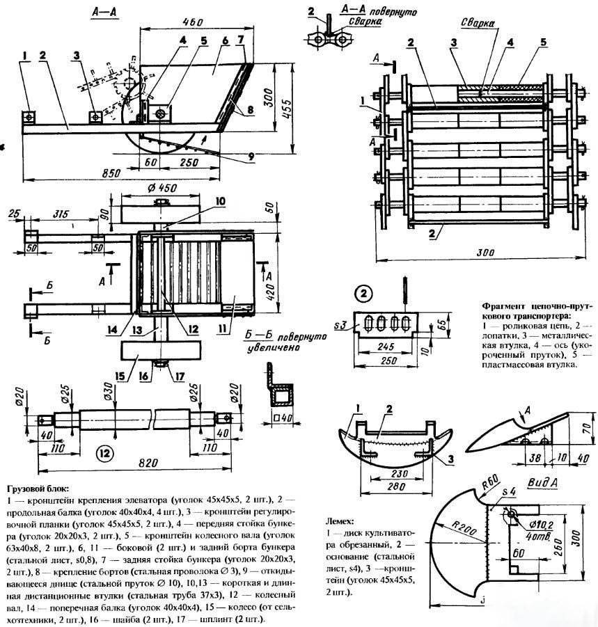 Сооружение картофелесажалки — дело непростое. Но домашним мастерам не составит труда сделать подобную технику. Для этого придётся собрать следующие детали: