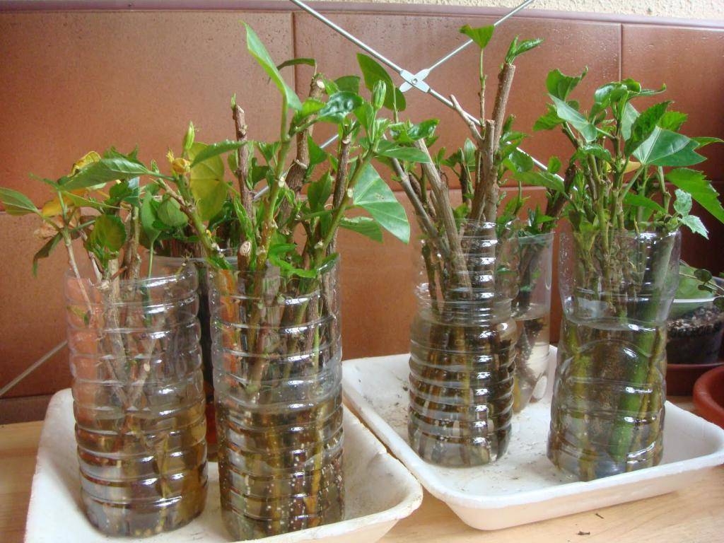 Черенки гибискуса, которые были обрезаны весной, лучше всего подходят для укоренения. Срезы нужно обработать стимулятором роста (например “Гетероауксином”) и поместить черенки в воду для образования корней или поместить их в смесь песка и торфа, после чего накрыть стеклянной банкой. Корни появляются через три-четыре недели, после чего черенки высаживаются в субстрат для китайской розы. Для того чтобы куст был более густым, верхушку нужно прищепить.