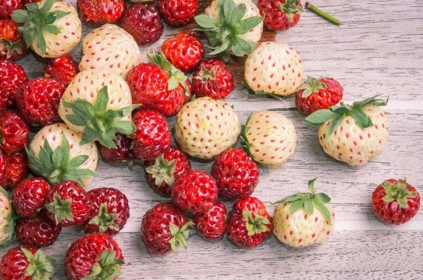 О спелости ягод судят по цвету зёрен, утопленных в белых ягодах. Как только они становятся красными/жёлтыми, земляника готова к сбору.