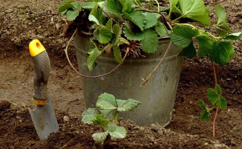 Отделённые от маточного растения кустики земляники уже готовы к высадке