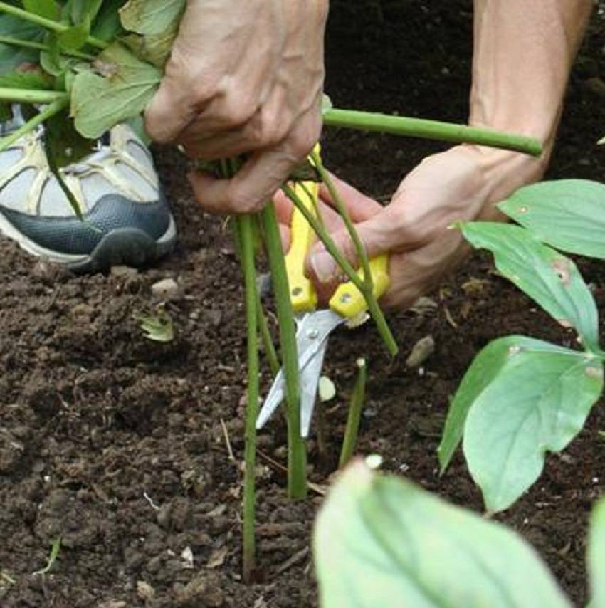 Осенняя обрезка стеблей пиона