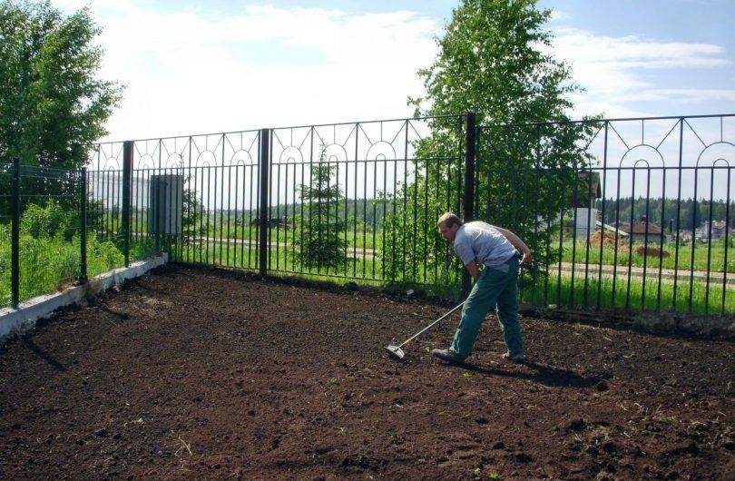 Теперь время выровнять землю от неровностей. Чтобы работать было легче, выполняйте этот этап в ясный день – тогда земля будет сухая и сыпучая. Используйте уровень, чтобы получить идеальный ковер газонной травы. Если на Вашем участке есть ямки или низина, то засыпать их можно землей, снятой с кочки или возвышенности или купить торфяной грунт.