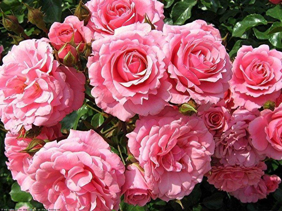 - Флорибунда. Еще одна группа роз, в чьи плюсы входит хорошая устойчивость к дождливой и морозной погоде, а также известным заболеваниям.В группу флорибунда входят сорта роз, созданные на основе полиантовых и чайных. Длина кустовых ветвей может быть как 40 см, так и 150 см. Цветки собираются в подобие букета уже на ветви. Бутоны полумахрового, либо махового типа.
