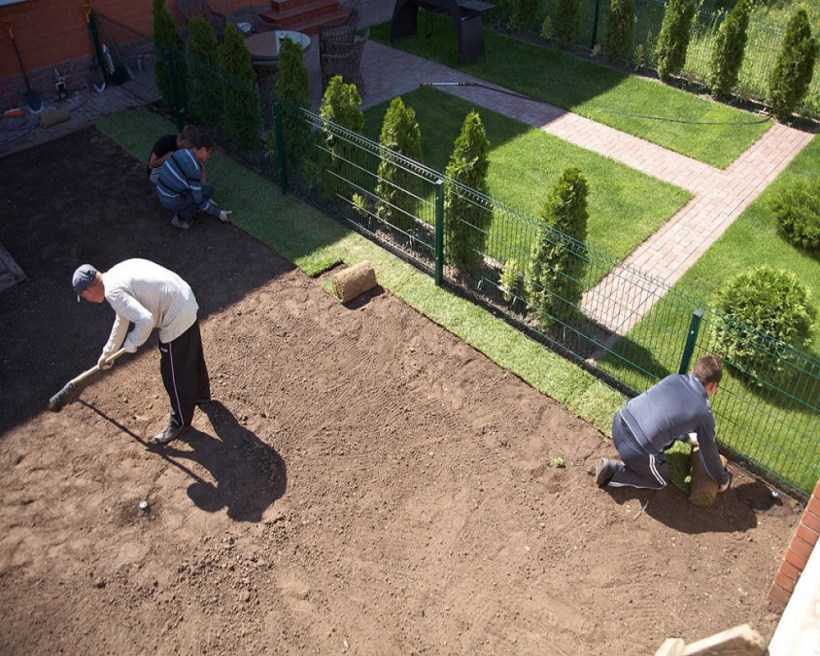 - После этого проводится выравнивание участка, искоренение пней (если они есть), устранение мусора и камней. Если почва бедна на минералы, то в нее вносят азотные и фосфорные удобрения.
