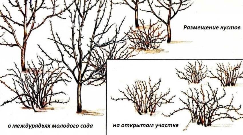 Часто кусты высаживают между карликовыми плодовыми деревьями или рядом с забором, что обеспечивает хорошую защиту растений от ветра.