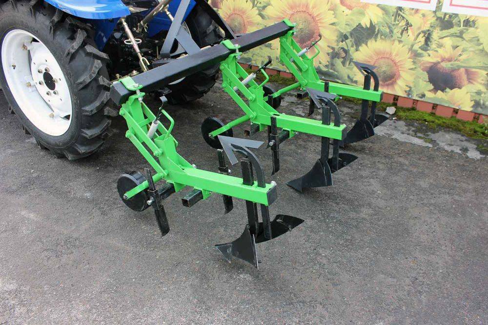 Трехкорпусный культиватор-окучник объединяет в себе функции пропашного и сплошного агрегата. Изделие подходит для маломощных тракторов, успешно применяется при возделывании картофеля, клубники, кукурузы и других культур. Устройство формирует грядки высотой до 60 см и шириной от 62 до 75 см.