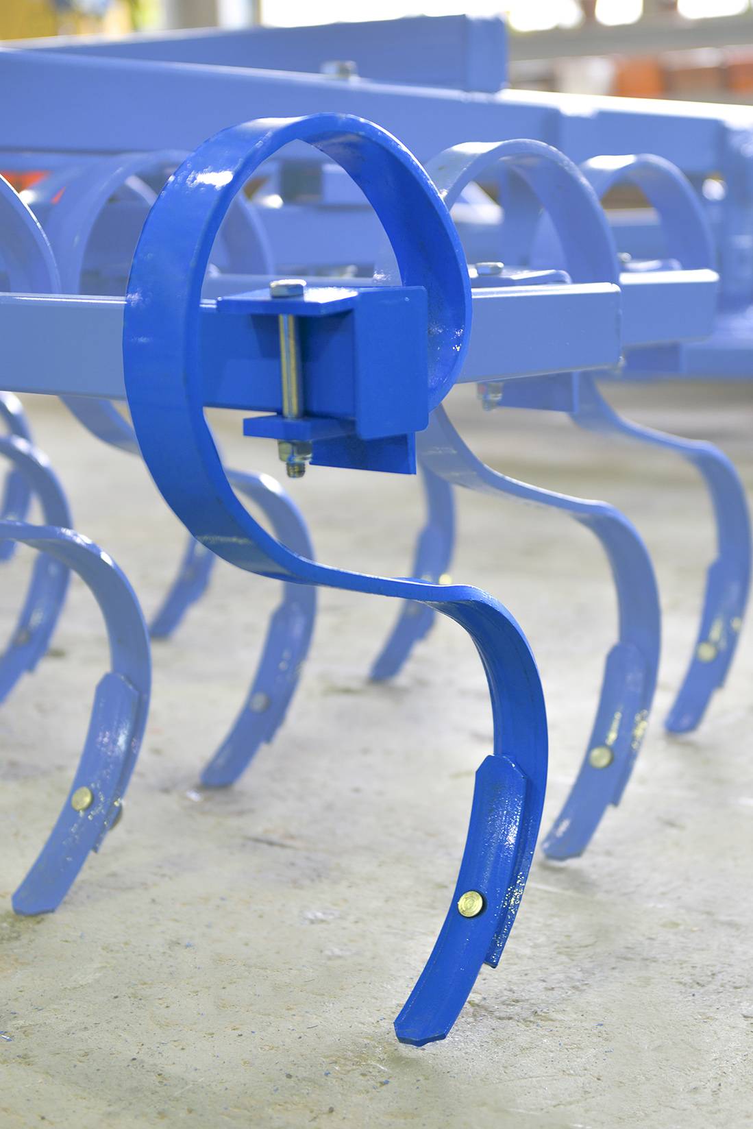 Усиленная пружинная стойка высотой 400 мм сечением 45х10 мм, стрельчатая лапа, 4 ряда рабочих органов расположенных на модульных рамках, роторный каток, сдвоенные опорные колеса (на крайних модулях одинарные)