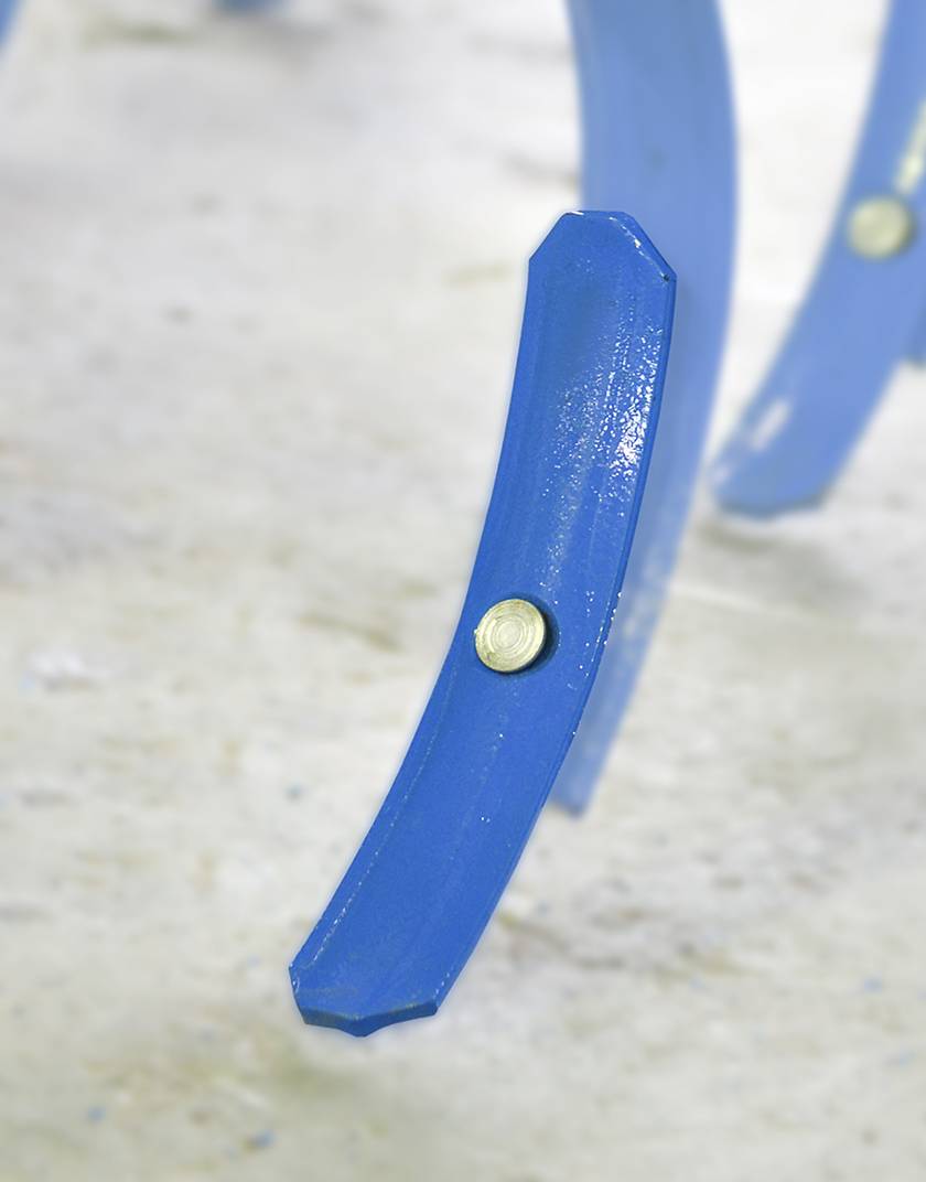 Нож представляет собой полосу, изогнутую на концах. Четыре режущих предмета выполнены в виде блока, который соединяется болтами. Количество блоков, которые можно установить на машине, связано с мощностью и массой техники.