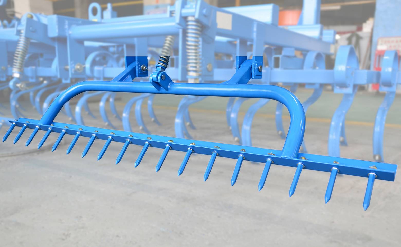Усиленная пружинная стойка высотой 400 мм сечением 45х10 мм, стрельчатая лапа, 3 ряда рабочих органов расположены на модульных рамках, планочно-зубовый выравниватель, сдвоенный роторный каток, сдвоенные опорные колеса (на крайних модулях одинарные)