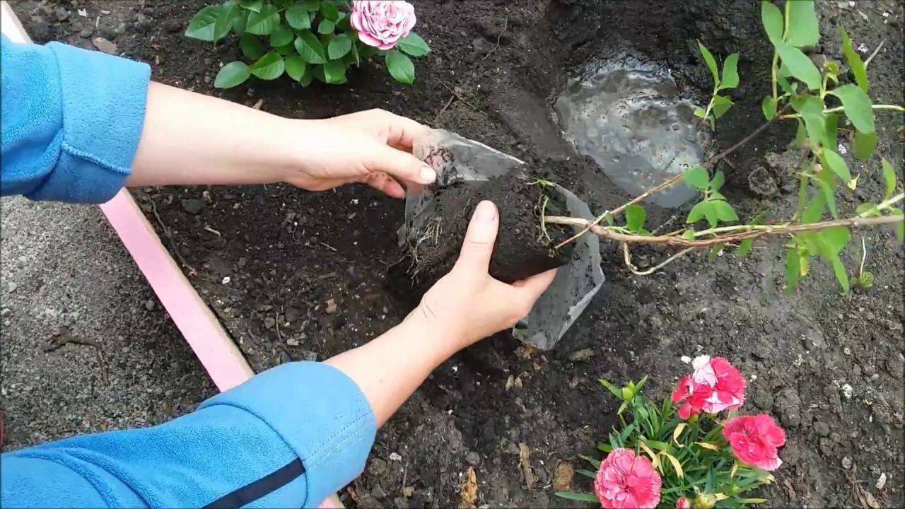 После чего корневая система погружается в ямку и засыпается подготовленной питательной почвой. Корневая шейка углубляется максимум на 3 см от поверхности почвы.