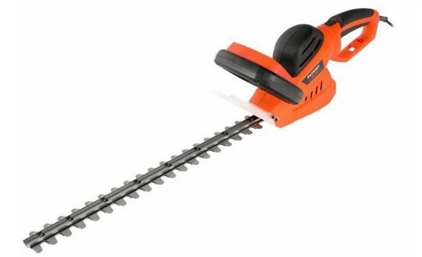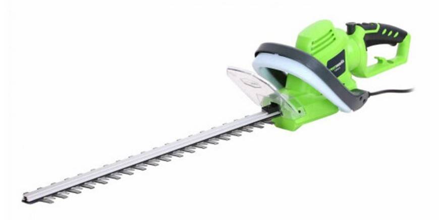 Мощный электрический кусторез, рассчитанный на обрезку веток толщиной до 35 мм. Длина двустороннего ножа в 50 см позволяет осуществлять ровную стрижку зелёной изгороди. Кусторез оснащён дополнительной ручкой, позволяющей более уверенно управлять инструментом. Две кнопки включения защищают от непредвиденного запуска.