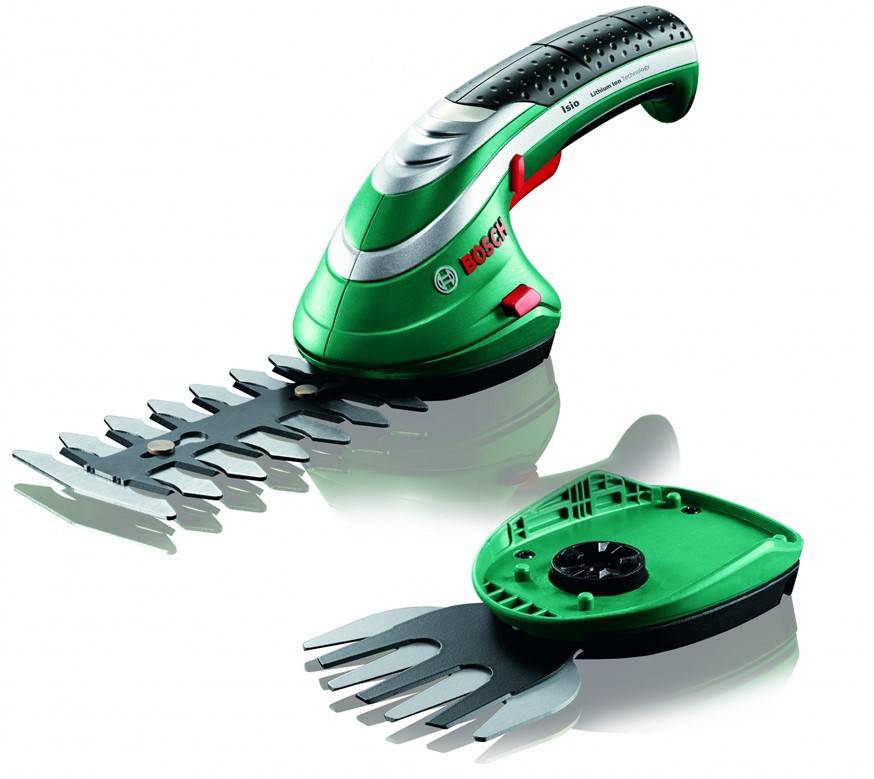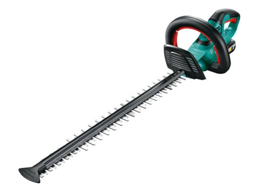 Кусторез, работающий от аккумуляторной батареи. Заряд обеспечивает непрерывную стрижку листвы в течение 80 минут. Срезка ветвей производится двусторонними ножами длиной 55 см. Максимальная толщина реза – 20 мм.