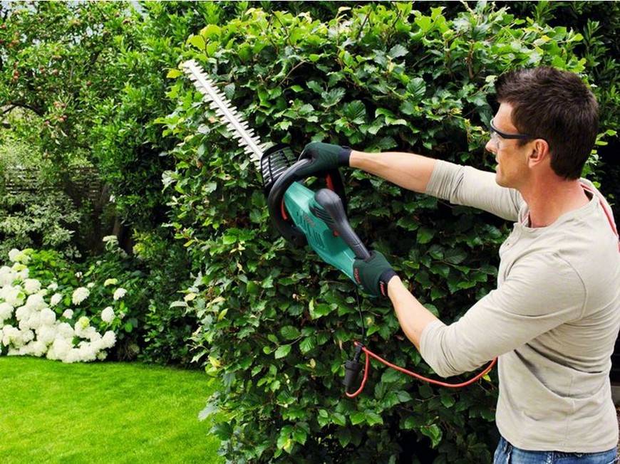 Электрический секатор Bosch отлично подходит для аккуратной стрижки живых изгородей средних размеров.
