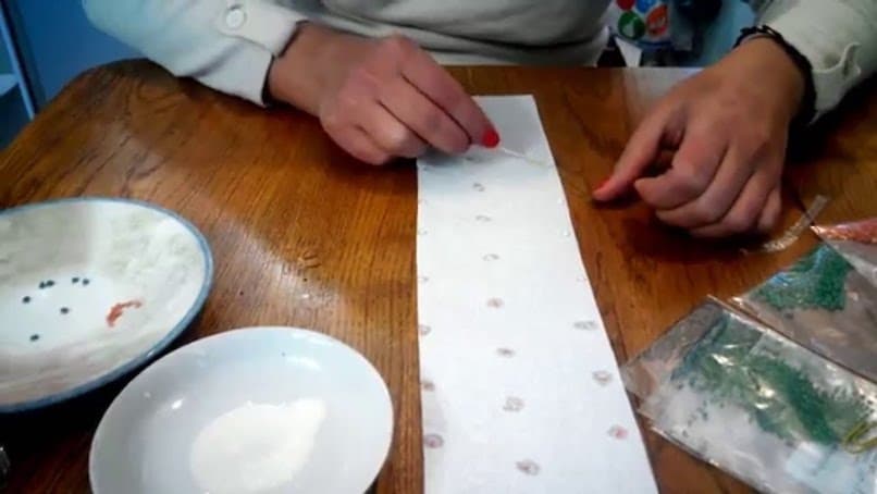 - полоску материи с грунтом и семенами аккуратно сворачивают и перевязывают нитью, но не туго;