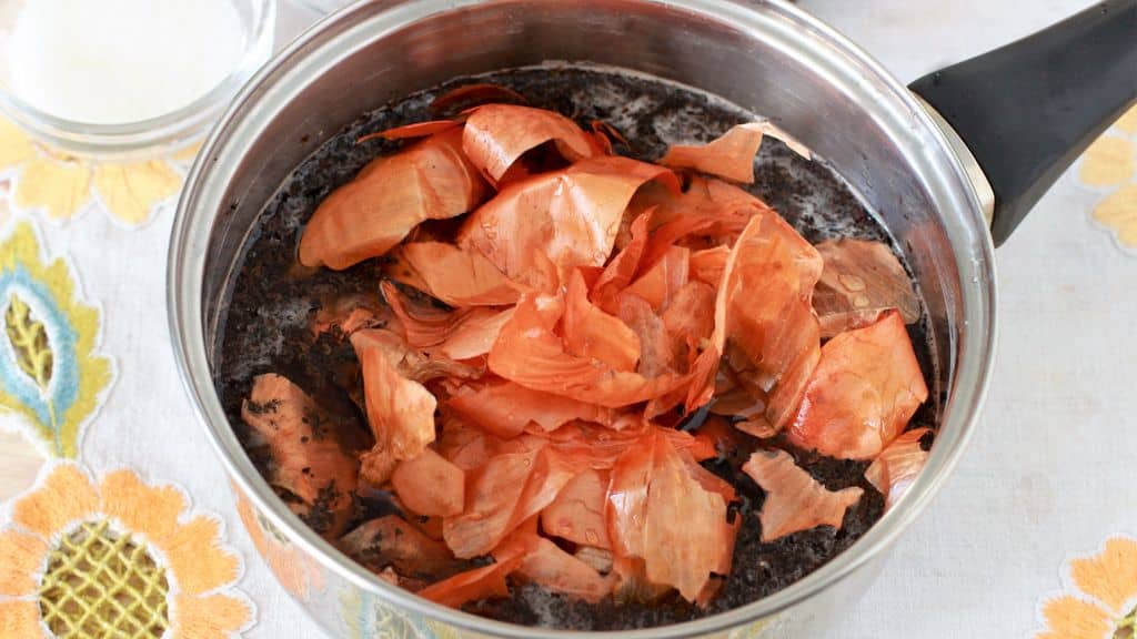 - Залейте кожицу лука теплой водой (40-50 градусов), накройте крышкой, уберите в темное, теплое место, подождите 15-20 часов.