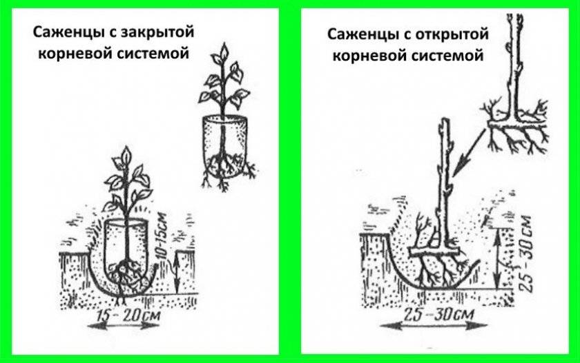 - Для растений с закрытыми корнями готовят ямки диаметром 50 см и такой же глубины, на расстоянии 0,9-1 м друг от друга. Ширина междурядий должна составлять 1,5-2 м.