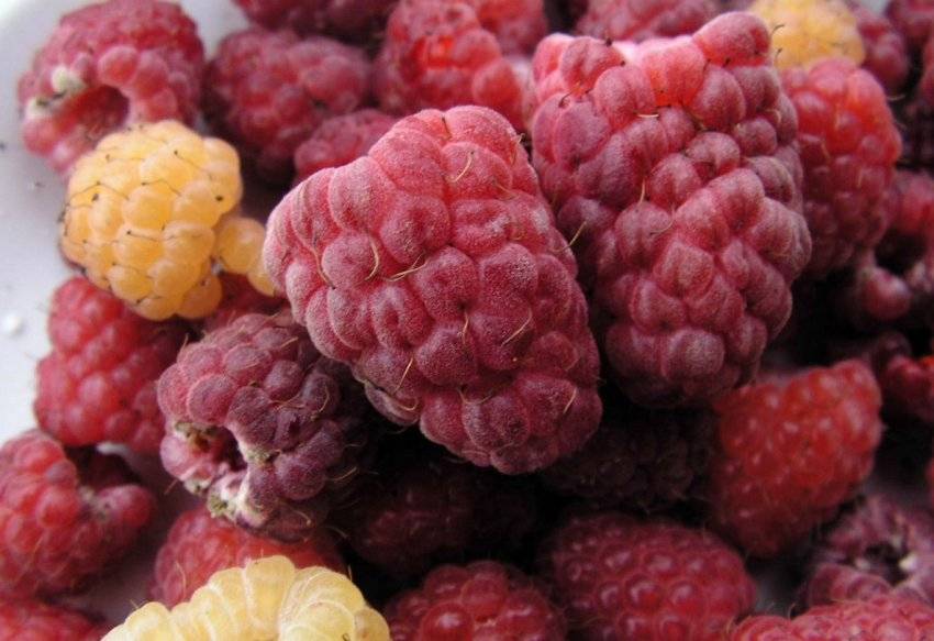 Знаете ли вы? Ещё в XIX веке скрестили красную и чёрную малину и получили ягоды прекрасного фиолетового цвета. Они очень полюбились кондитерам.