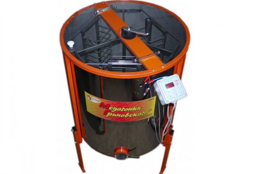Владельцам средних пасек, содержащих около 40 ульев, оптимально подойдет полупрофессиональный аппарат Грановского. Рассчитан он на четыре рамки, но кассеты установлены вращающиеся. Принцип работы, управления прост и аналогичен бытовым моделям. Отличается только увеличенная производительность.