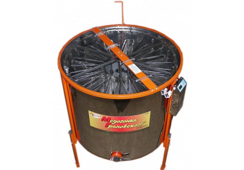 Отдельно можно выделить медогонку Грановского, разработанную на рамку «РУТ». Она является восьмирамочной, используют на профессиональной пасеке, которая содержит свыше 50 семей пчел. Качественное сделать устройство Грановского своими руками довольно сложно, можно соорудить медогонки только они будут отличаться от тех, что предлагает Би-Пром своею производительностью.