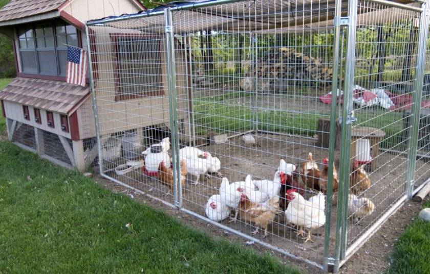 Рядом с курятником отводят место для выгула, куда куры имеют возможность выходить сами, когда захотят. Данный участок огораживают со всех сторон, накрывают сверху. Не стоит забывать про навес, под который птицы могут спрятаться в случае выпадения осадков.